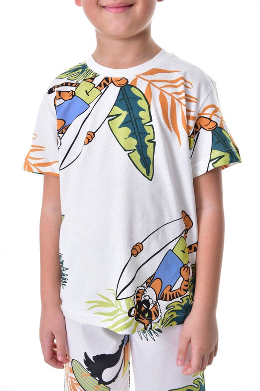 طقم مكون من قطعتين للأولاد باللون الأبيض