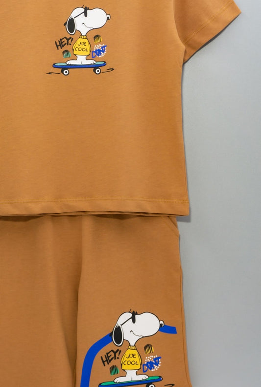 طقم مكون من قطعتين برسمة SNOOPY باللون البني
