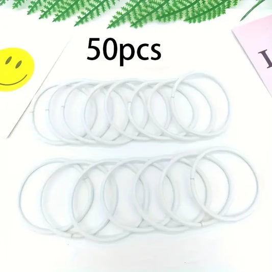 مجموعة من ربطات شعر مرنة باللون الابيض عدد 50 حبة