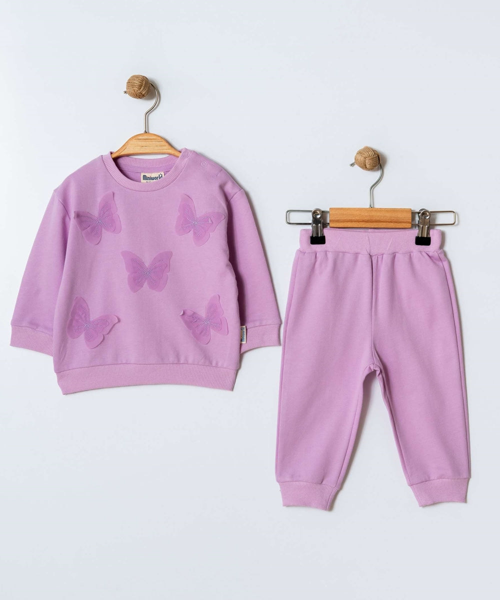 طقم طفلة مكون من قطعتين برسمة فراشات باللون البنفسجي من Miniworld