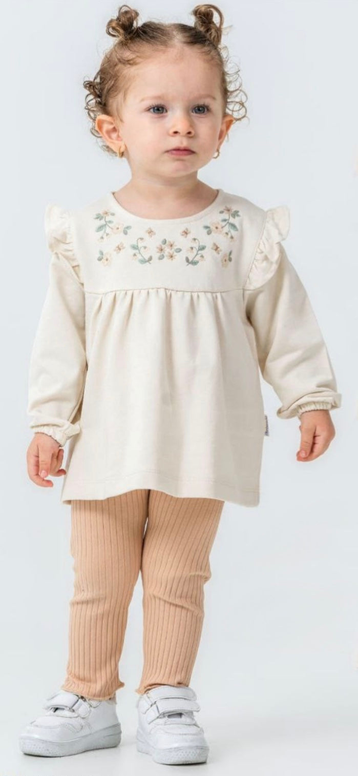 طقم مكون من قطعتين باللون البيج برسمة ورود من Miniworld
