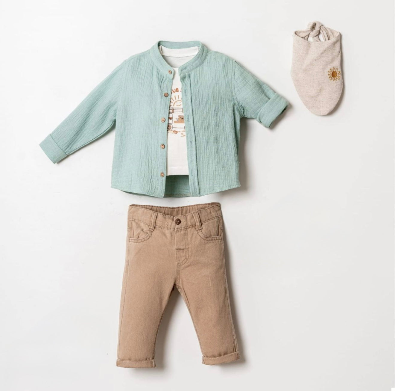 لبس طفل رضيع مكون من 4 قطع باللون الأخضر والبني من COCOSISSS