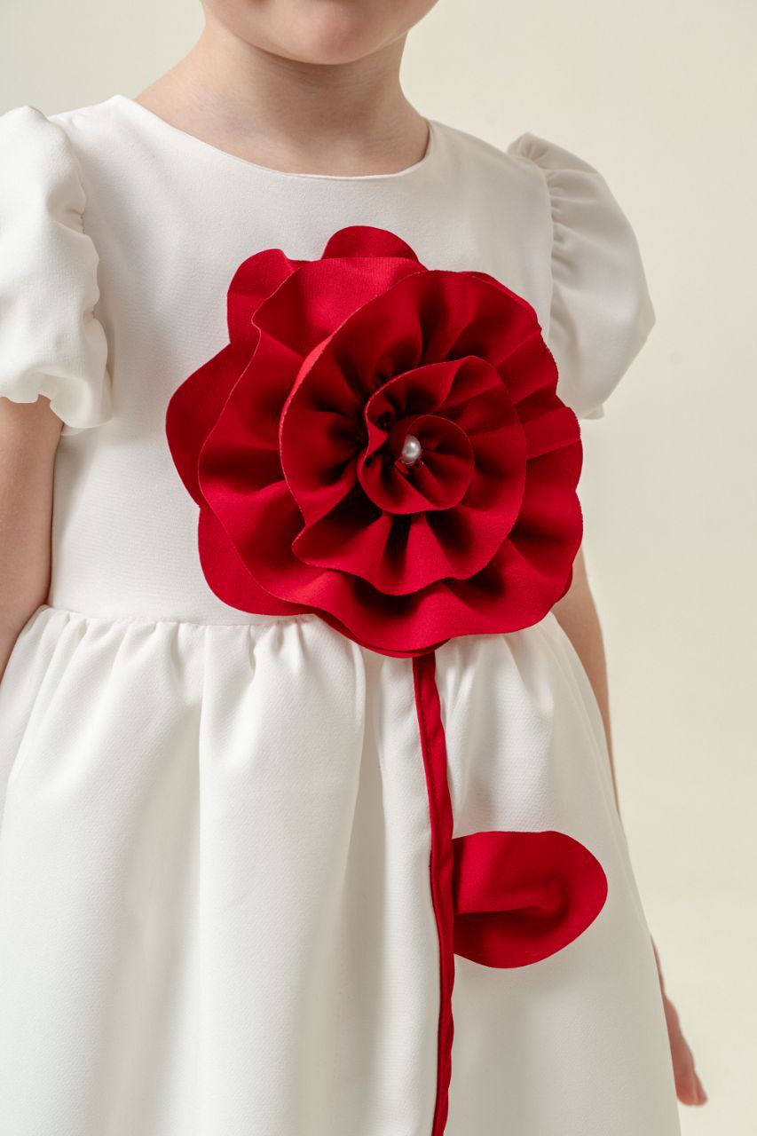 ERAY فستان باللون الأبيض برسمة وردة حمراء من
